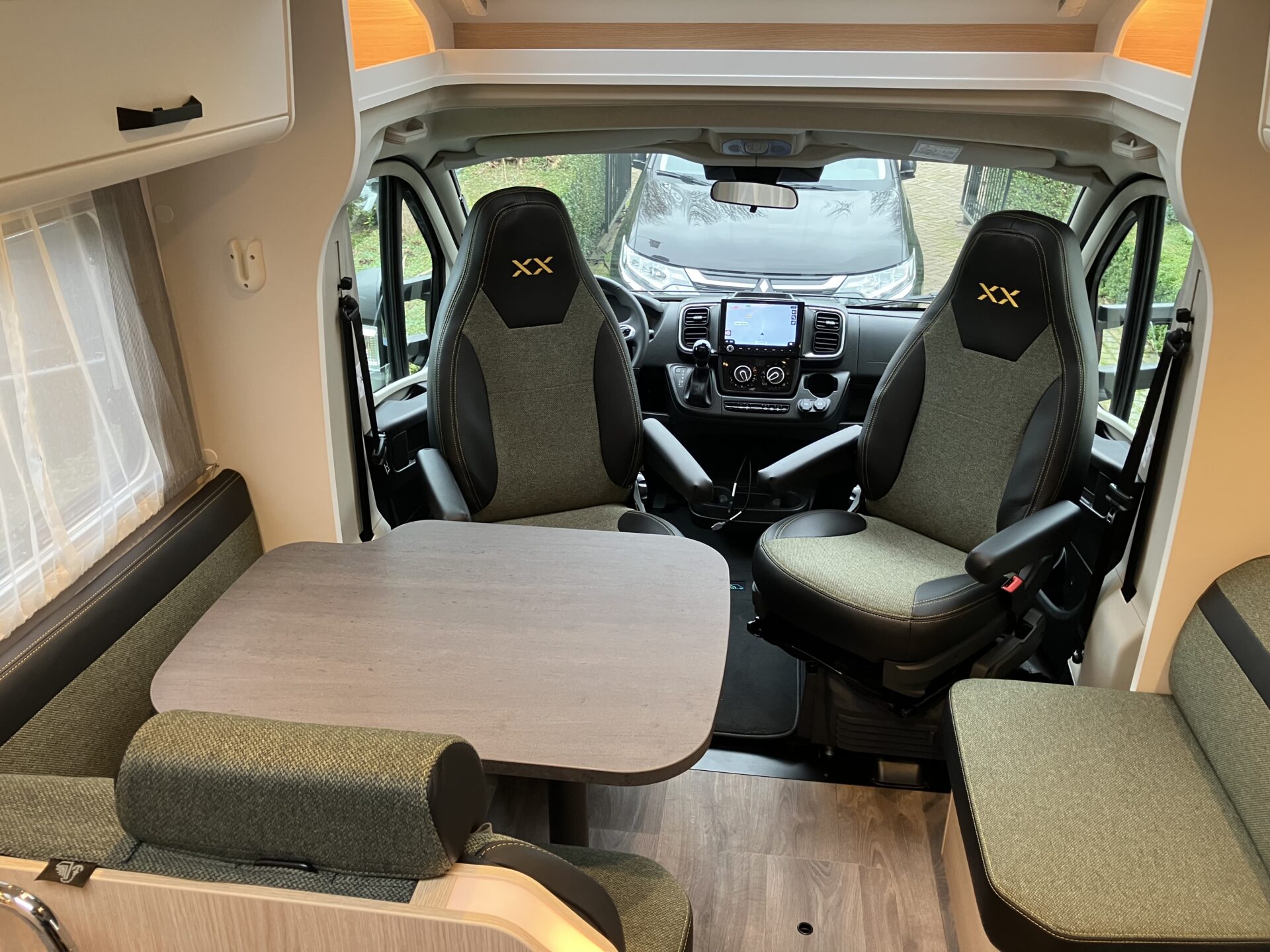 Het royale zitgedeelte nodigt uit tot ontspannen momenten samen, en dankzij de efficiënte ringverwarming en de boiler is deze camper perfect geschikt voor kampeertrips in elk seizoen. De grote garage biedt voldoende ruimte om twee fietsen veilig op te bergen, en met de fietsendrager kun je zelfs drie fietsen meenemen (maximaal twee elektrische fietsen i.v.m. gewicht).