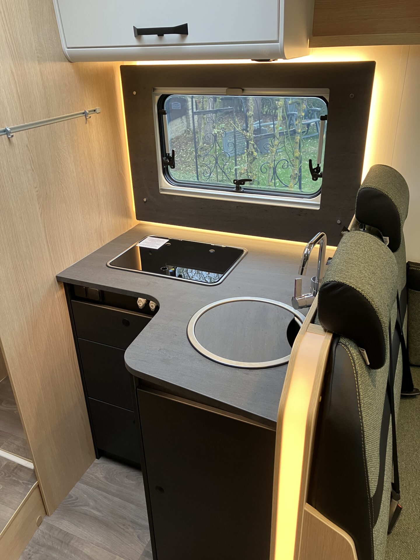 Extra veiligheidsloten op alle deuren zorgen voor een gerust gevoel, waar je ook heen reist. Deze camper is voorzien van een volledige inventaris voor vier personen, en met de vele opbergruimtes neem je al je bagage moeiteloos mee.